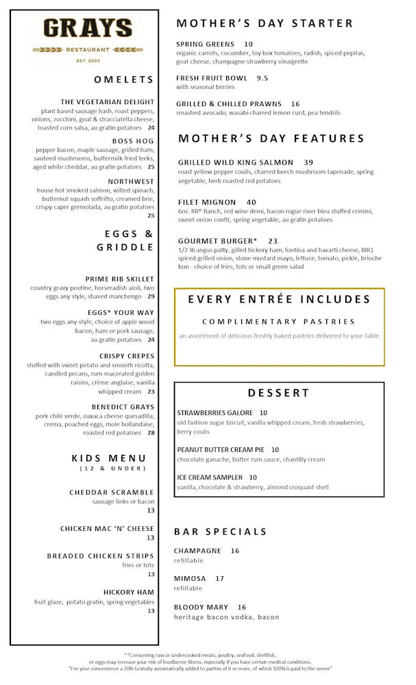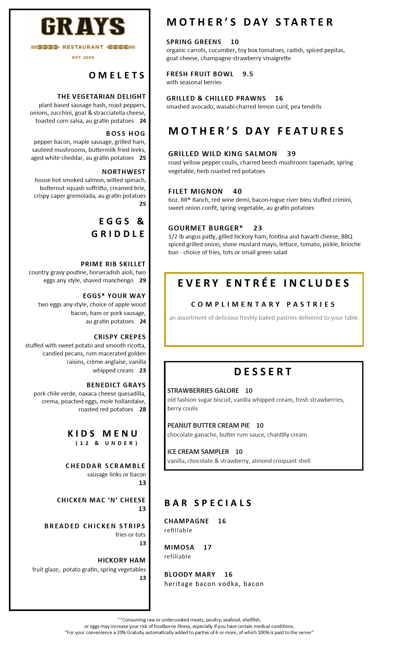 Grays restaurant and bar: where gourmet and comfort food unite. Mingle over pub fare with silver-spoon touches, craft brews, and distinctive cocktails.